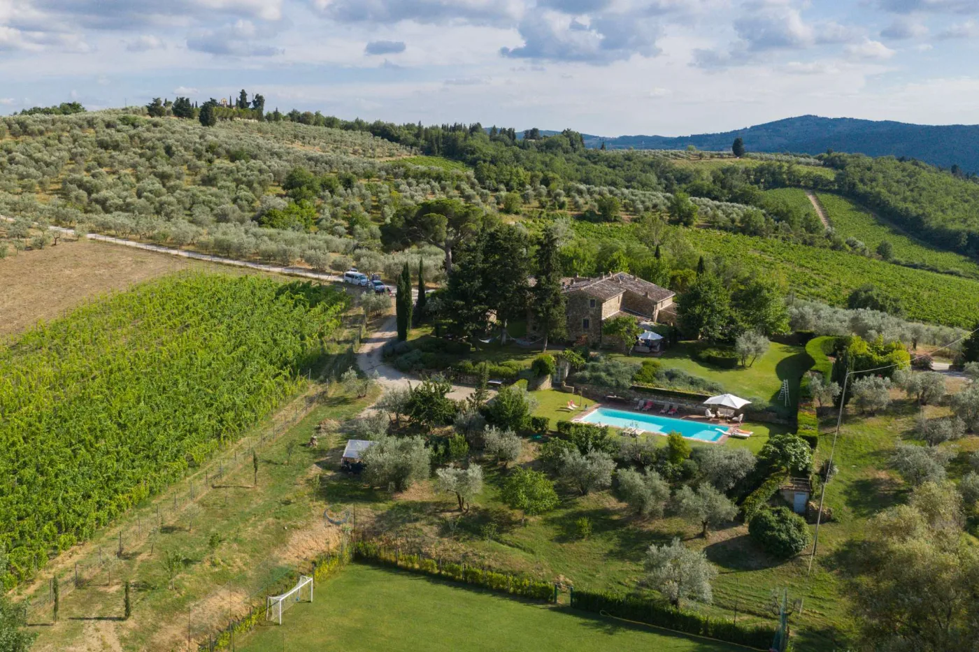 A historic Tuscan villa set among vineyards and rolling countryside. Every suite is named, every room has its own character. This is not a hotel — it is a private home, lived in together for eight days.